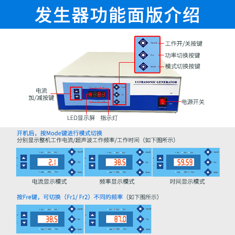 頻率可調(diào):可根據(jù)不同的清洗要求進(jìn)行自動(dòng)或手動(dòng)切換使用單頻率或多頻率;