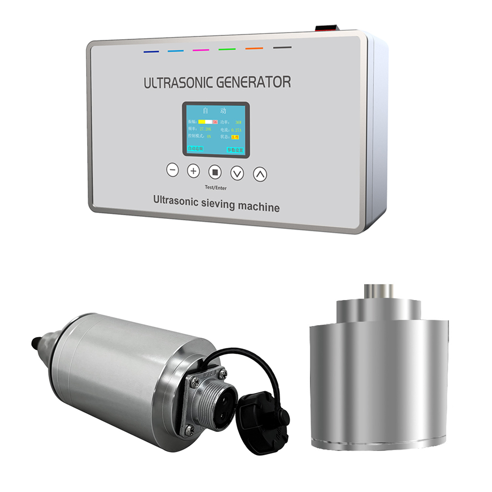 超聲波發(fā)生器產(chǎn)生的高頻電信號(hào)通過(guò)換能器轉(zhuǎn)換為高頻正弦形式的縱向振蕩波,這些振蕩波傳到共振環(huán)上使共振環(huán)產(chǎn)生共振,然后由共振環(huán)將高頻振動(dòng)均勻傳導(dǎo)到整個(gè)篩網(wǎng)。使其細(xì)粉物料在低振幅、高頻振動(dòng)條件下容易篩分,高頻振動(dòng)是讓與篩網(wǎng)接觸的物料快速通過(guò)篩孔,提高篩網(wǎng)穿透率,從而提高篩分精度與效率。
