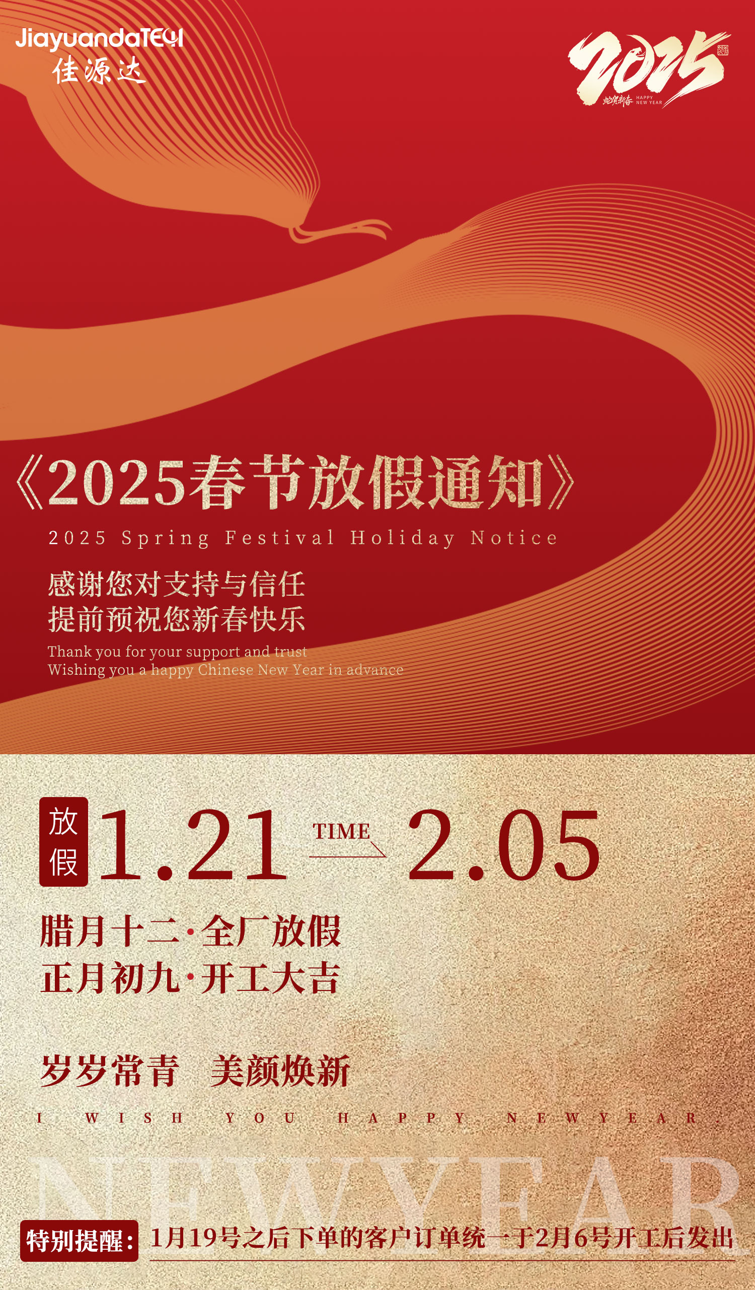 春節(jié)將至,佳源達(dá)科技衷心祝愿所有新老用戶在新的一年里萬(wàn)事順心,闔家幸福!也祝愿大