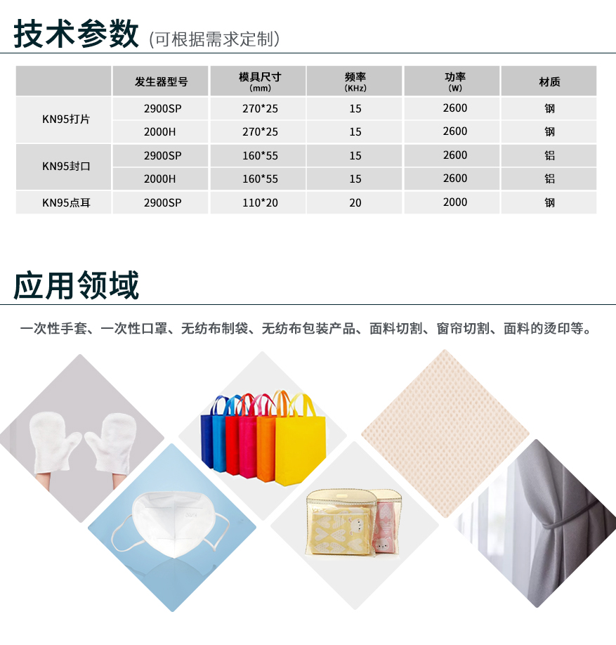 超聲波口罩焊接系統(tǒng)由超聲波發(fā)生器、超聲波換能器和工具頭三大主要部件組成,在口罩焊接應(yīng)用上有良好的表現(xiàn)。自動追頻功能、帶頻率、功率、電流異常保護(hù);PLC或RS485控制;焊接速度快,焊接質(zhì)量穩(wěn)定。