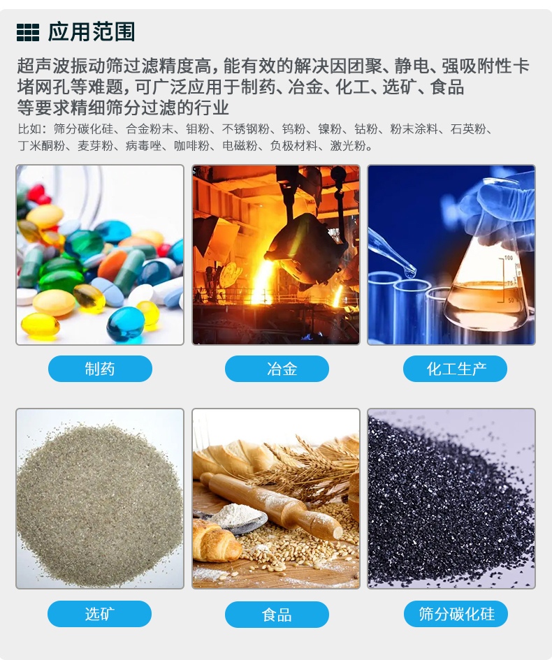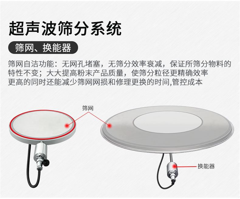 MAR系列是一款專業(yè)的超聲波篩分系統(tǒng),它由超聲波發(fā)生器和篩網(wǎng)換能器組成,可滿足于28~38KHz頻率使用范圍,該系統(tǒng)可自動跟蹤最佳諧振頻率,補(bǔ)償因發(fā)熱等原因造成的失諧;也能加裝到任意新的或現(xiàn)有的振動篩上;主要的應(yīng)用領(lǐng)域?yàn)榉旨?、防護(hù)篩分、除塵和實(shí)驗(yàn)室中典型的分析篩分。
