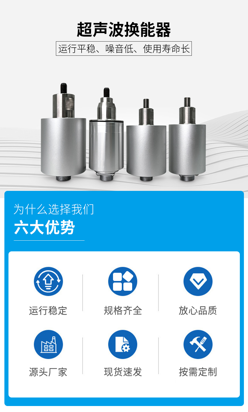 MAR28超聲波換能器運(yùn)行穩(wěn)定、噪音低、使用壽命長、規(guī)格齊全,選用上好的鋼和鈦合金為原材料制作,嚴(yán)格的質(zhì)量監(jiān)控,可根據(jù)客戶不同需求提供定制服務(wù)。