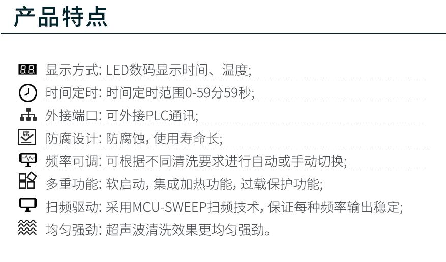 多頻PCB式超聲波發(fā)生器JYD-400X,軟啟動,集成加熱功能,過載保護(hù)功能;頻率可以根據(jù)不同的清洗要求進(jìn)行自動或手動切換。